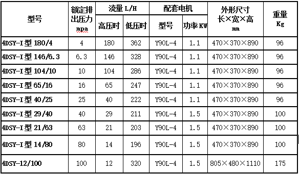 上海楷陽泵業(yè)生產(chǎn)的4DSY-I系列電動試壓泵是專供各類壓力容器、管道、鍋爐、鋼瓶、閥門、壓力容器、消防器材作實(shí)驗室和水壓試驗中獲得高壓液體的理想設(shè)備。試壓泵產(chǎn)品及配套試壓、試驗工程,已應(yīng)用在航空領(lǐng)域的試壓試驗,并且在國防科研重點(diǎn)開發(fā)項目中應(yīng)用。為我國重大的科研項目地下如:高壓爆破試驗、深海試驗、空間技術(shù)、高溫高壓試驗、異形管試驗等,并做出了重大貢獻(xiàn)。