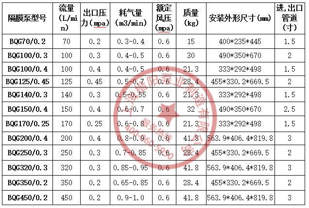 BQG-140/0.3礦用氣動隔膜泵型號意義及參數
