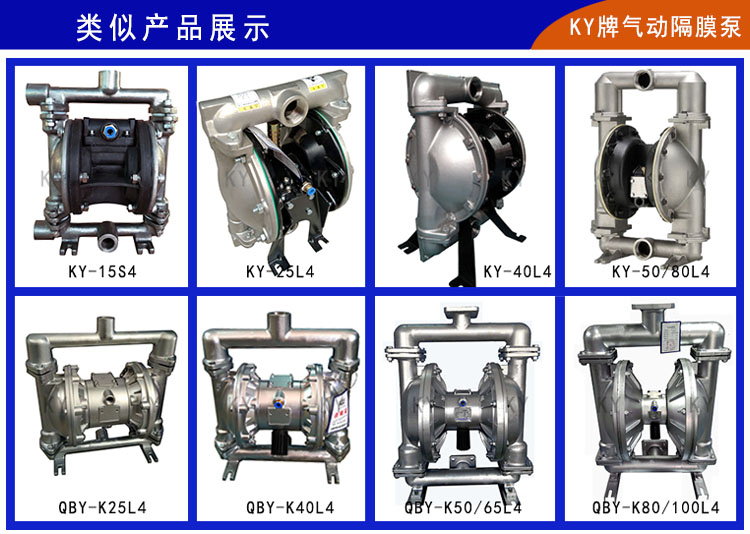 8、KY牌氣動雙隔膜泵整體構造上更加優化,泵腔和主管路都有明顯加強,自吸功能和流量揚程都有很大改善(最大流量/54立方/小時,最大揚程80米);被客戶成為超大流量氣動隔膜泵和壓濾機專用氣動隔膜泵。