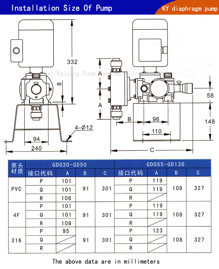 二、隔膜計(jì)量泵的安裝地點(diǎn)要方便宜人員進(jìn)出、操作與維護(hù),工作區(qū)內(nèi)不要有任何妨礙操作的障礙物。