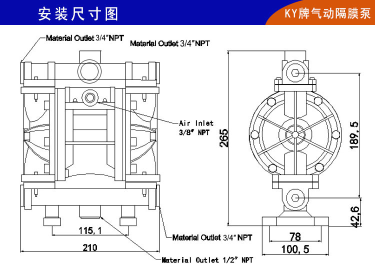 11)楷陽氣動泵可做多種材質泵體,具有良好的抗腐蝕性,適用于各種介質