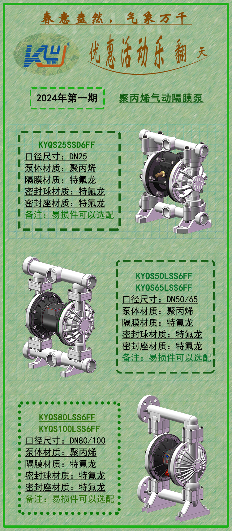 KYQ和KYQS等系列產品經過了近幾年的市場檢驗,不僅外觀更加精致,性能更是有質的提升。為了提高廣大新老客戶對KY新產品的認識速度,楷陽泵業在2024年會分階段、分型號定期推出優惠活動。