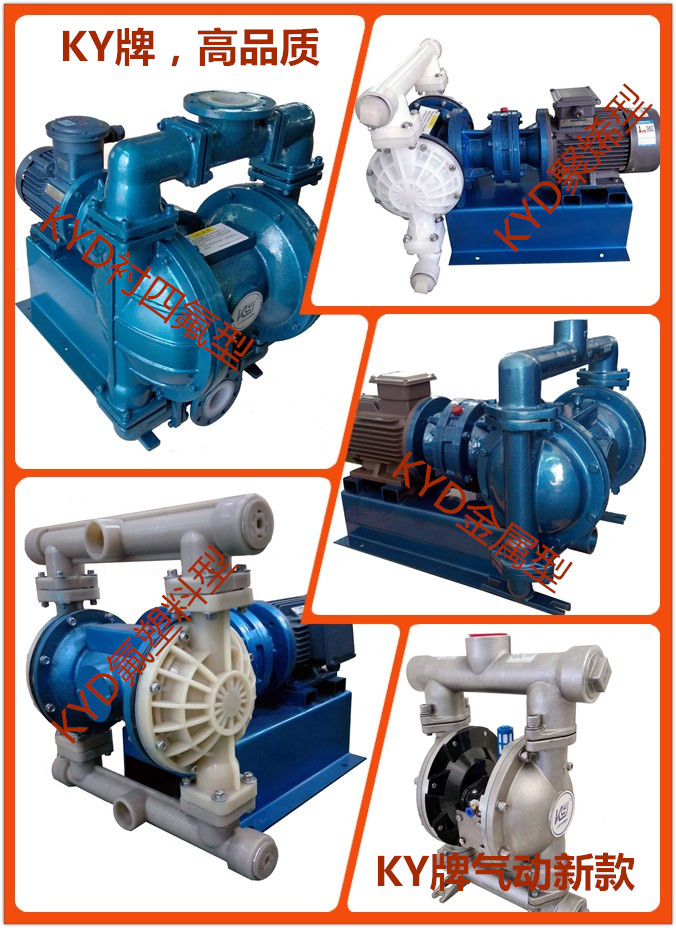 KYD電動隔膜泵是上海楷陽經過數年的研發改進之高品質產品,是具有國際高水平的電動隔膜泵。其材質也取得了突破性的進展,上海楷陽生產的KYD電動隔膜泵主要材質有不銹鋼304電動隔膜泵、不銹鋼316L電動隔膜泵、鑄鋼電動隔膜泵、鋁合金電動隔膜泵、工程塑料(增強聚丙烯)電動隔膜泵、氟塑料(聚偏氟乙烯)電動隔膜泵和耐腐蝕抗壓性能超強的鋼襯氟電動隔膜泵等。既滿足了一些化工、醫藥、水處理等行業的耐腐蝕需求,也可以滿足一些廢水、污泥等粘稠含雜質較多的介質輸送。