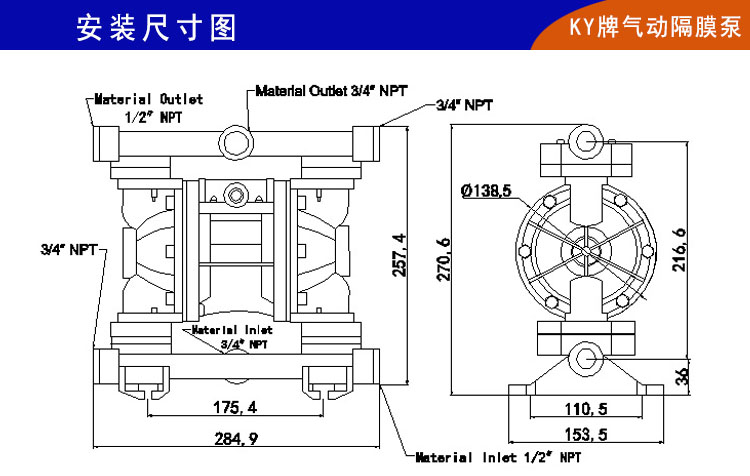 3、KY-20SS工程塑料氣動隔膜泵最大的特點是供氣壓力在0.2Mpa以上就可以正常啟動(老型QBY型塑料氣動隔膜泵供氣壓力需要0.5Mpa以上才可以正常運轉),不用再為氣動設備多導致氣壓不足而停機。