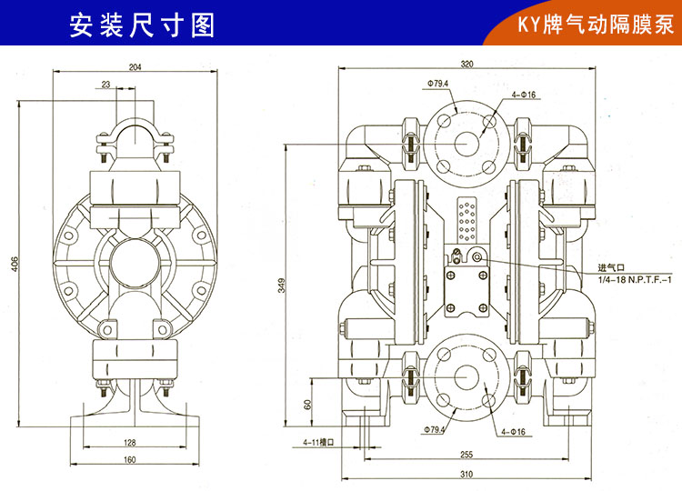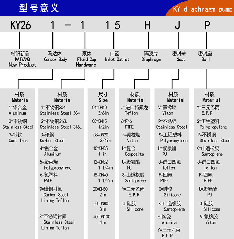 9、KY型氣動隔膜泵整體構造上更加優化,泵腔和主管路都有明顯加強,自吸功能和流量揚程都有很大改善(最大流量/54立方/小時,最大揚程80米);被客戶成為超大流量氣動隔膜泵和壓濾機專用氣動隔膜泵。