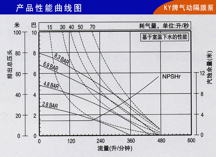 6、氣動隔膜泵不需灌引水,吸程高達7米,揚程達80米,出口壓力≧8bar