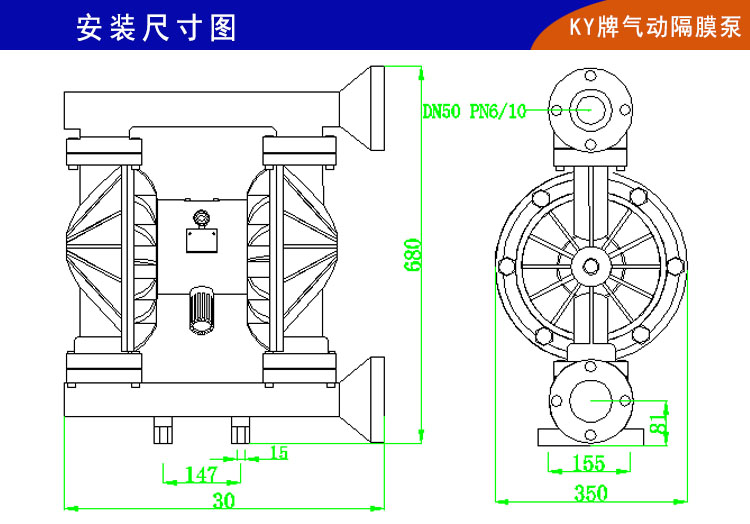 2、QBY-KB50LS聚丙烯氣動隔膜泵配氣裝置內置,做到了真正的不卡氣、無死機,外觀更加美觀大方;空氣利用率大大提高,自吸功能和流量揚程都有很大改善。