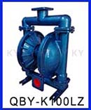 QBY-K100LL氣動隔膜泵是第四代QBY氣動隔膜泵,標準名字是QBY-K氣動隔膜泵;它以壓縮空氣為動力;當壓縮氣體進入中間馬達體,馬達體會將壓縮氣體壓入隔膜泵其中一腔從而推動隔膜片運動擠壓液體流出,同時第四代QBY氣動隔膜泵的另一腔因為被拉出而吸入液體。當隔膜片到達終點,配氣閥機構自動將壓縮空氣引入泵腔另一端,推動隔膜片朝相反方向運動,從而使隔膜片在泵體的兩個腔做往復運動,抽動液體流動。上海楷陽隔膜泵廠家為方便客戶使用,第四代QBYK氣動隔膜泵已經研發了十余種材質生產:鑄鐵氣動隔膜泵、鋁合金氣動隔膜泵、不銹鋼304氣動隔膜泵、不銹鋼316L氣動隔膜泵、工程塑料(增強聚丙烯)氣動隔膜泵、氟塑料(PVDF)氣動隔膜泵和耐腐蝕抗壓性能超強的鋼襯氟第四代QBY氣動隔膜泵等。