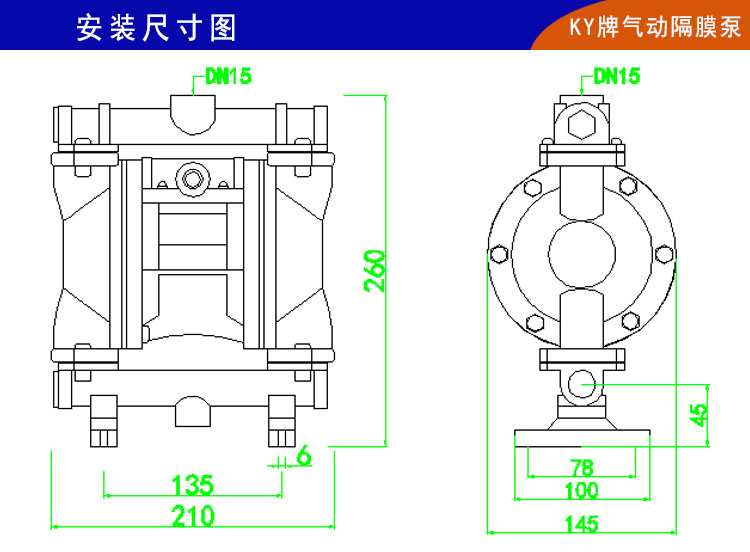 9、KY牌鋁合金氣動隔膜泵整體構造上更加優化,泵腔和主管路都有明顯加強,自吸功能和流量揚程都有很大改善。