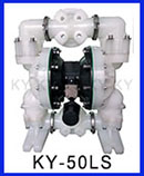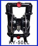 QBY-K50LL鋁合金氣動隔膜泵是第四代氣動泵,它以壓縮空氣為動力;左右兩個泵腔分別裝有彈性隔膜,因此又稱氣動雙隔膜泵。當壓縮氣體進入中間馬達體,馬達體會將壓縮氣體壓入隔膜泵其中一腔從而推動隔膜片運動擠壓液體流出,同時隔膜泵的另一腔因為被拉出而吸入液體。當隔膜片到達終點,配氣閥機構自動將壓縮空氣引入泵腔另一端,推動隔膜片朝相反方向運動,從而使雙隔膜片在氣動泵的兩個腔做往復運動,抽動液體流動。上海楷陽氣動隔膜泵廠家為方便客戶使用,第四代QBY-K50氣動泵已經研發了十余種材質生產:鑄鐵氣動泵、鋁合金氣動隔膜泵、不銹鋼304氣動泵、不銹鋼316L氣動泵、工程塑料(增強聚丙烯)氣動隔膜泵、氟塑料(PVDF)氣動隔膜泵和耐腐蝕抗壓性能超強的鋼襯氟氣動泵等。