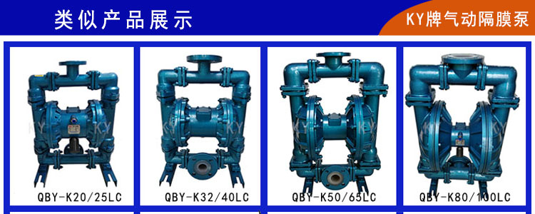QBY-K25LC耐腐蝕氣動隔膜泵以壓縮空氣為動力,是氣動雙隔膜泵的改進產品,又叫做第四代氣動雙隔膜泵。當壓縮氣體進入襯四氟隔膜泵氣室,配氣裝置會將壓縮氣體處理并壓入泵其中一腔從而推動隔膜片運動,擠壓液體流出;然而第四代氣動雙隔膜泵的另一腔泵因為被拉出而吸入液體。當隔膜片到達終點,配氣閥機構會通過活塞換氣,自動將壓縮空氣引入泵腔另一端,推動隔膜片朝相反方向運動,從而使兩個隔膜片在泵體的兩個腔做往復運動抽動液體流動。