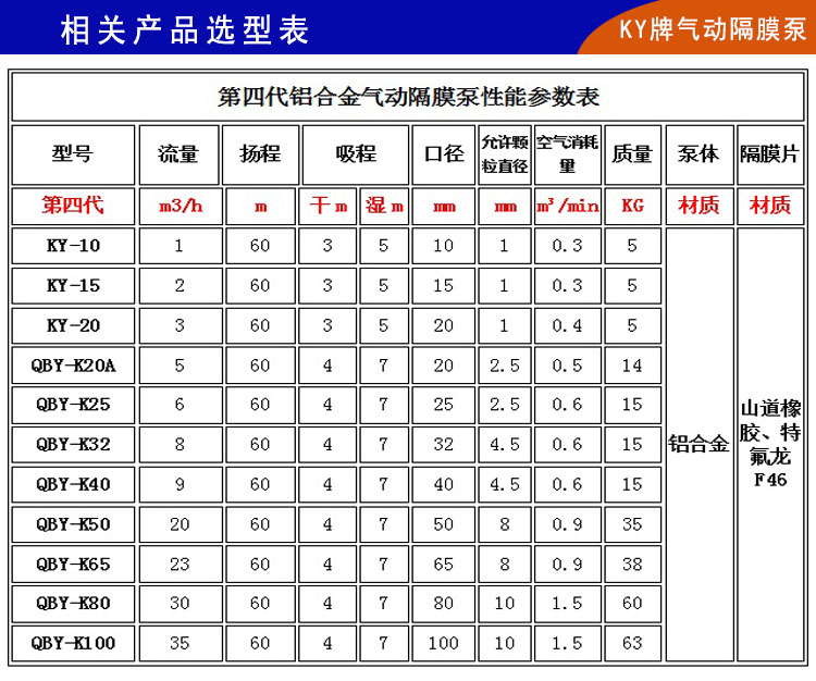 備注:隔膜泵材質并沒有好壞的差別,重要的是能根據抽送的液體選擇正確的隔膜泵材質。以上是常規介質選型參考數據,實際選型時請提供介質所含具體化學成分給我們公司客服,以便更準確點的選擇水泵材質。