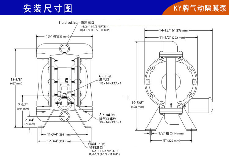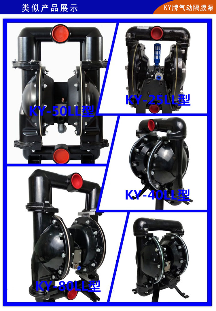 2)、KY-40LL大流量氣動泵整體構造上更加優化,泵腔和主管路都有明顯加強,自吸功能和流量揚程都有很大改善。