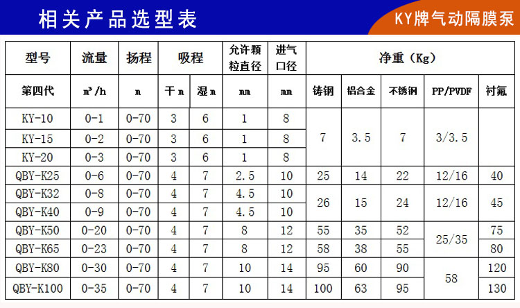 2)、QBY-K氣動隔膜泵配氣裝置內(nèi)置,做到了真正的不卡氣、無死機(jī),外觀更加美觀大方;空氣利用率大大提高,自吸功能和流量揚程都有很大改善。