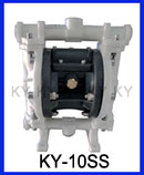KY-10SZ新型鑄鐵氣動隔膜泵工作原理是以壓縮空氣為動力,當壓縮氣體進入配氣閥,配氣閥會將壓縮氣體壓入氣動泵其中一腔從而推動隔膜片運動擠壓液體流出,然而泵的另一腔泵因為被拉出而吸入液體。當隔膜片到達終點,配氣閥機構自動將壓縮空氣引入泵腔另一端,推動隔膜片朝相反方向運動,從而使兩個兩個隔膜片在新型KY氣動泵的兩個腔做往復運動抽動液體流動。